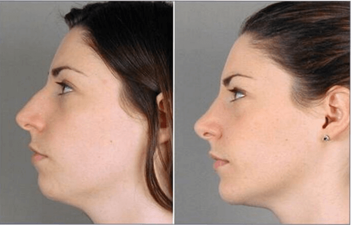 قد يبدو الأنف طويلًا جدًا وقد تظهر الجبهة للأمام جدًا عندما تكون الذقن صغيرة جدًا مقارنة بتعابير الوجه الأخرى. يمكن للمريض الذي لديه بنية فك صغيرة أو متخلفة في كثير من الأحيان أن يستخدم حشوة الذقن أو تقنيات أخرى لموازنة نسبة الوجه.